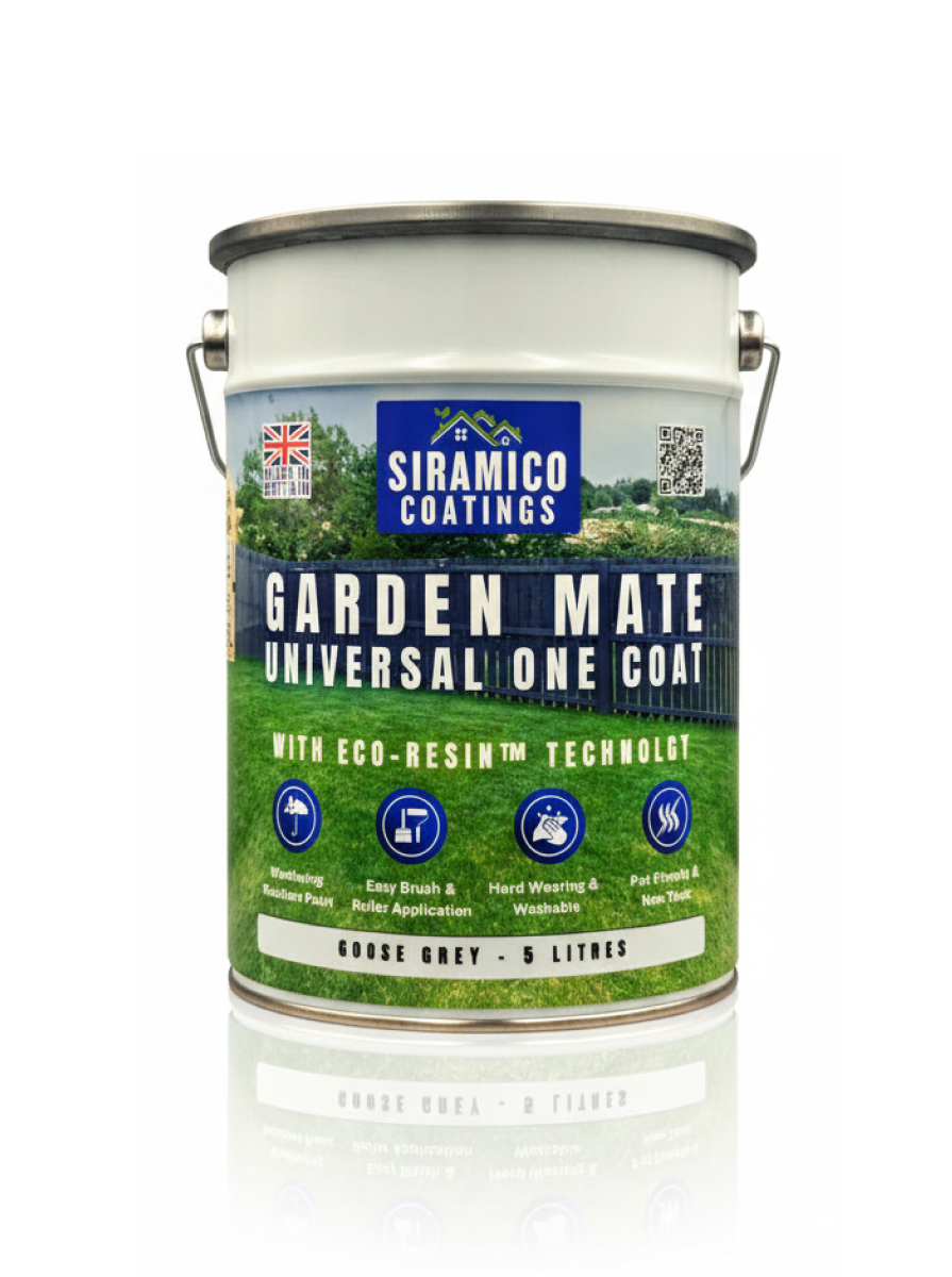 Excellent coverage with just one coat. Transform and protect your outdoor spaces with Siramico's Garden Mate. Specially formulated for long lasting exterior use, this high-quality paint provides a durable, weather-resistant finish that enhances the beauty and longevity of your garden structures, paths and furniture.