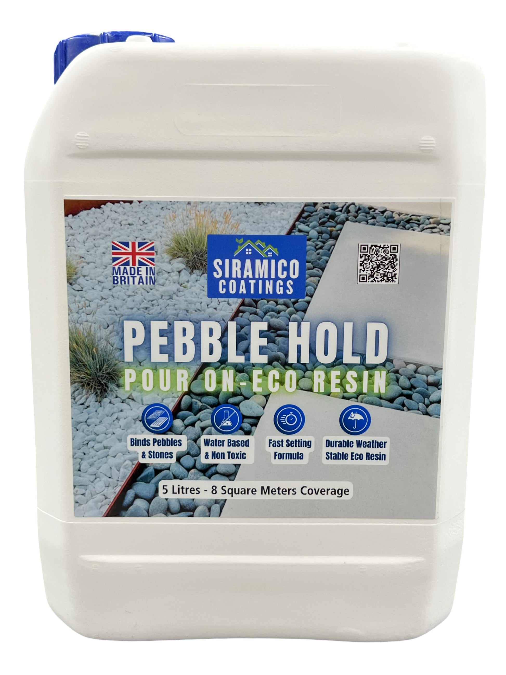 Pebble Hold Pour On ECO-Resin™ Glue Binder | 5 litres - 8m² | Waterbased Binder for Pebbles & Stones on Borders, Patios & Garden Paths. Non Toxic & Pet Friendly