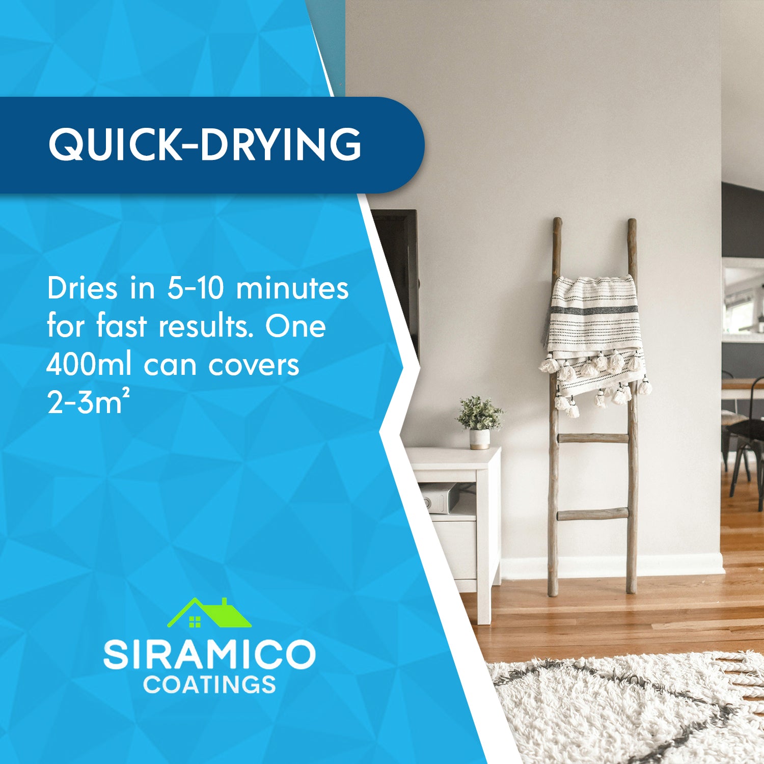5-10 Mins Quick-Dry Formula for Homes for instant blocking effect. The 400ml can covers an area of 2-3m², making it a highly efficient spray for ceilings and hard-to-reach spots.